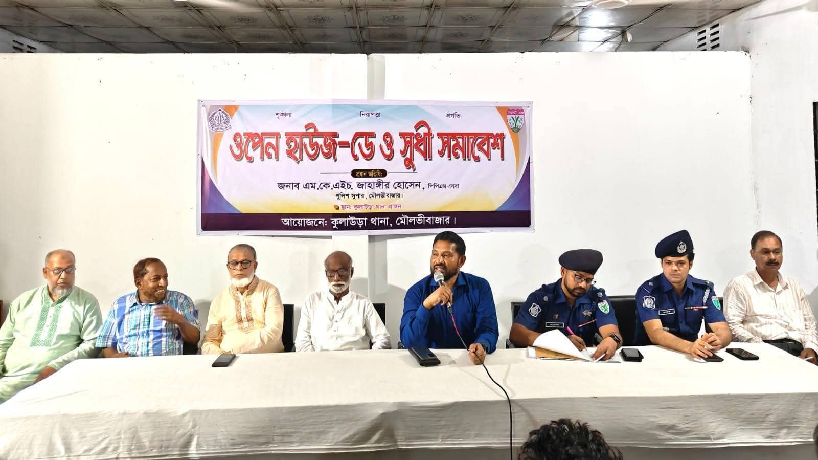 কুলাউড়া সার্কেলের নবাগত অতিরিক্ত পুলিশ সুপার মো. আজমল হোসেনের সঞ্চালনায় অনুষ্ঠানে উপস্থিত ছিলেন মৌলভীবাজার-২ (কুলাউড়া) আসনের সাবেক সংসদ সদস্য নওয়াব আলী আব্বাস খান, জেলা বিএনপির সাবেক সহসভাপতি শওকতুল ইসলাম শকু, উপজেলা বিএনপির আহবায়ক রেদোয়ান খান, কমিটির সদস্য বদরুল হোসেন খান, উপজেলা জামায়াতের আমির সহকারী অধ্যাপক আব্দুল মুন্তাজিম, নায়েবে আমির মো. জাকির হোসেন, সেক্রেটারি বেলাল আহমদ চৌধুরী, বিএনপি নেতা আলমগীর হোসেন ভুঁইয়া ও সুফিয়ান আহমদ, ব্যবসায়ী কল্যাণ সমিতির সভাপতি বদরুজ্জামান সজল, সাধারণ সম্পাদক আতিকুর রহমান আখই,