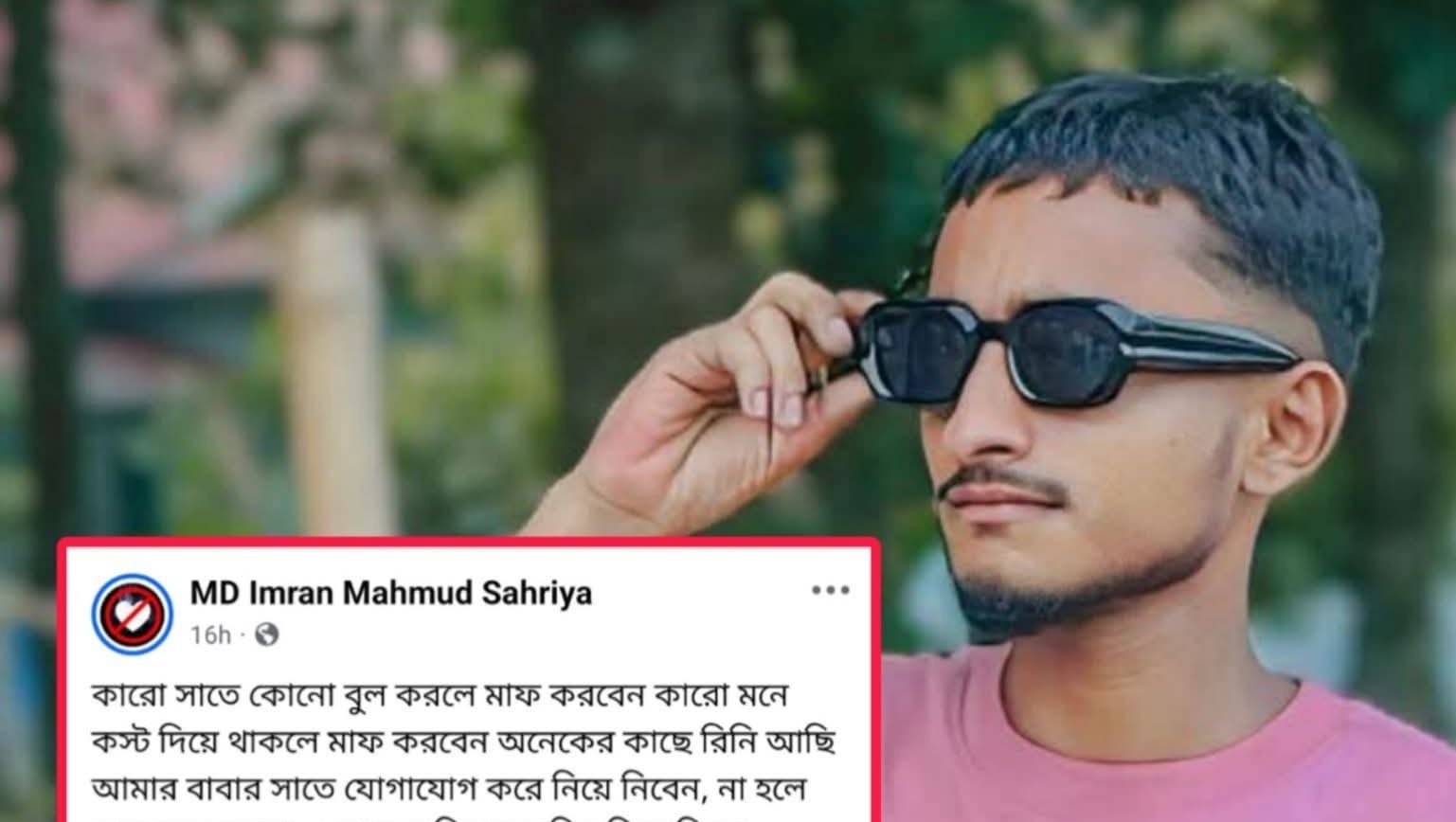 এমডি ইমরান মাহমুদ সাহরিয়া নামক ফেসবুক আইডিতে ইমরান আহমদ লিখেছে, ‘কারো সাথে কোনো ভুল করলে মাফ করবেন। কারো মনে কষ্ট দিয়ে থাকলে মাফ করবেন। অনেকের কাছে ঋণি আছি, আমার বাবার সাথে যোগাযোগ করে নিয়ে নিবেন। না হলে মাফ করবেন তা-ও না হলে হিসাবের দিন দিয়ে দিব ওইখানে, নিয়ে নিবেন। আমার মৃত্যুটা আমার ভুলের কারণে। কাউকে কোনো দোষী বানাবো না। শুধু এটাই বলবো প্রিয়জনের অবহেলায় আর পরিবারের অবহেলায় আজ আমি নাই পৃথিবীতে।’