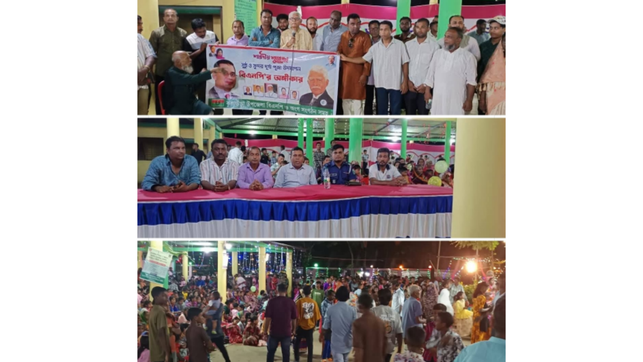 গাজিপুর পূজা মান্ডপ পরিদশনে বিএনপির এমপি প্রার্থী এড আবেদ রাজা সহ বিএনপি যুবদল ও ছাত্রদলের নেতৃবৃন্দ। এছাড়াও উপজেলা যুবদলের আহবায়ক ও জেলা যুবদলের সহ সভাপতি জুবের আহমদ খান, প্রেসক্লাব কুলাউড়ার সিনিয়র ভাইস প্রেসিডেন্ট ময়নুল হক পবন, গাজিপুর চা বাগান পঞ্চায়েত কমিটির সভাপতি অশোক কুমার গোয়ালা বাবলু,সাংবাদিক শাহ আলম শামীম,জয়চন্ডি ইউনিয়ন বিএনপির সহ সভাপতি মো:নাদির মিয়া প্রমুখ।