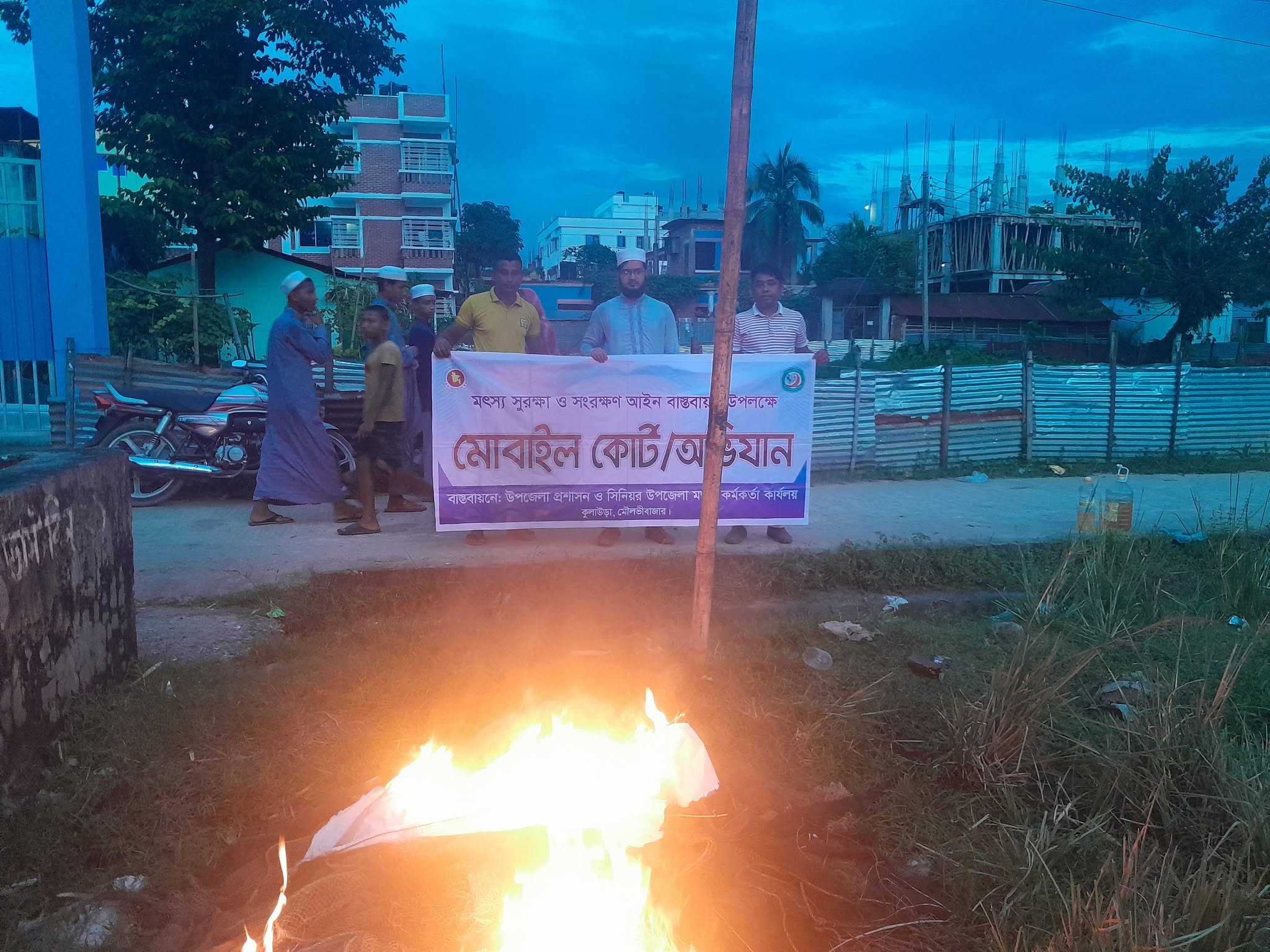 অভিযান চলাকালে অবৈধভাবে জলাশয়ে বেড়জাল স্থাপন করে মাছ আহরণের কারণে পরিবেশ ও মৎস্যসম্পদ ক্ষতির অভিযোগে এসব জাল ও স্থাপনা অপসারণ করা হয়।