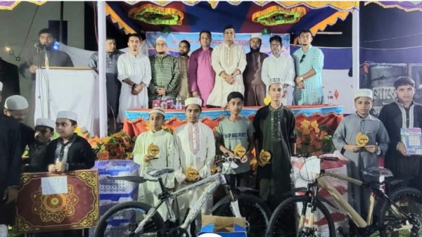 স্টাফ রিপোর্টার। কুলাউড়া উপজেলায় টানা ৪০ দিন পাঁচ ওয়াক্ত নামাজ জামাতে আদায় করায় ৬০ জন শিশু কিশোরকে পুরস্কৃত করা হয়েছে। এমন ব্যতিক্রমী কর্মসূচির আয়োজন করে উপজেলার কাদিপুর ইউনিয়নের মনসুর ইসলামীক সোসাইটি ।নিয়মিত নামাজ আদায়কারী ৬০ শিশু কিশোরের মধ্যে ২ জনকে বাইসাইকেল, ৩ জনকে টেবিল ফ্যান ও ৫ জনকে টেবিলসহ বাকিদের বিভিন্ন উপহারসামগ্রী দেওয়া হয়।