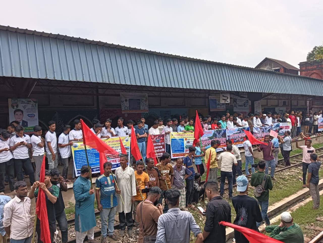 ষ্টাফ রিপোর্টার।। সিলেট-ঢাকা ও সিলেট-কক্সবাজার রেলপথে দুটি নতুন ট্রেন চালুসহ আট দফা দাবিতে মৌলভীবাজারের কুলাউড়া জংশন স্টেশনে রেলপথ অবরোধ কর্মসূচি পালিত হয়েছে।শনিবার সকাল ১০টার দিকে এ কর্মসূচি শুরু হয়। সংশ্লিষ্ট কর্তৃপক্ষের দাবি পূরণের আশ্বাসে প্রায় ৪ ঘণ্টা পর বেলা দুইটার দিকে কর্মসূচি প্রত্যাহারের ঘোষণা দেন আন্দোলনকারী নেতারা।এর আগে রেলওয়ের ঊর্ধ্বতন কর্মকর্তাদের সঙ্গে আন্দোলনকারীদের প্রতিনিধি দলের একটি বৈঠক হয়। অবরোধের কারণে বিভিন্ন রেল স্টেশনে কয়েকটি ট্রেন আটকা পড়ে।বিষয়টি নিশ্চিত করেছেন ‘আট দফা দাবি বাস্তবায়ন আন্দোলন’ সংগঠনের মূখ্য সমন্বয়ক ও কুলাউড়া ব্যবসায়ী কল্যাণ সমিতির সাধারণ সম্পাদক এম আতিকুর রহমান।তিনি বলেন, বৈঠকে রেলের কর্মকর্তারা সব আন্তনগর ট্রেনে দুটি করে অতিরিক্ত বগি সংযোজন ও ট্রেনে উন্নত ইঞ্জিন স্থাপনের কথা বলেছেন। আজমপুর স্টেশনের পর অন্য স্টেশনে আন্তনগর পারাবত ও কালনী এক্সপ্রেস ট্রেনের যাত্রাবিরতি বন্ধে ঊর্ধ্বতন কর্মকর্তাদের সঙ্গে আলোচনা করে ব্যবস্থা নেবেন। কর্মকর্তারা বলেছেন, ডিসেম্বর মাসের মধ্যে বন্ধ রেলস্টেশন চালু ও সিলেট-আখাউড়া সেকশনে দুটি লোকাল ট্রেন চালু করা হবে। ৭২ ঘন্টার মধ্যে কুলাউড়া থেকে সিলেট রেল স্টেশন পর্যন্ত আন্তনগর পারাবত, উপবন ও কালনী এক্সপ্রেস ট্রেনে ৪০ আসনবিশিষ্ট একটি করে বগি দেওয়া হবে।রেলের কর্মকর্তারা বলেছেন, সিলেট-আখাউড়া রেলপথ সংস্কারে এক হাজার ৭৩৯ কোটি টাকার প্রকল্প নেওয়া হয়েছে। চলতি নভেম্বর মাসে কাজের দরপত্র আহ্বান করা হবে। এ ছাড়া ২০২৬ সালের জানুয়ারি মাসের মধ্যে সিলেট-ঢাকা ও সিলেট-কক্সবাজার রেলপথে দুটি নতুন ট্রেন চালু হবে।আন্দোলনকারীদের সূত্রে জানা গেছে, কর্মসূচি সফল করতে সকাল থেকেই লোকজন লাল পতাকা হাতে নিয়ে কুলাউড়া রেলস্টেশনে জড়ো হতে থাকেন। বিভিন্ন রাজনৈতিক, সামাজিক ও শ্রমিক সংগঠনের ব্যানারে খণ্ড খণ্ড মিছিল নিয়ে যোগ দেন তাঁরা।এ সময় কুলাউড়ায় আট দফা দাবি বাস্তবায়ন আন্দোলনের যুগ্ম আহ্বায়ক এম আতিকুর রহমানের সঞ্চালনায় বক্তব্য দেন ত্রয়োদশ সংসদ নির্বাচনে মৌলভীবাজার-২ (কুলাউড়া উপজেলা) আসনে বিএনপির মনোনয়নপ্রত্যাশী আবেদ রাজা, জামায়াতে ইসলামীর প্রার্থী সাহেদ আলীসহ অনেকে।একপর্যায়ে বিএনপি চেয়ারপারসনের উপদেষ্টা ও সিলেট সিটি করপোরেশনের সাবেক মেয়র আরিফুল হক চৌধুরী ভার্চ্যুয়ালি যুক্ত হয়ে কর্মসূচির প্রতি একাত্মতা জানান। তিনি বলেন, ‘সিলেট বিভাগ রেল, সড়ক যোগাযোগসহ নানা ক্ষেত্রে বৈষম্যের শিকার হচ্ছে। এ বৈষম্যের বিরুদ্ধে কুলাউড়ার পাশাপাশি সিলেটের মানুষও জেগে উঠেছেন। রেলের আট দফা দাবি যৌক্তিক। দাবি আদায় না হওয়া পর্যন্ত মাঠ ছাড়া 