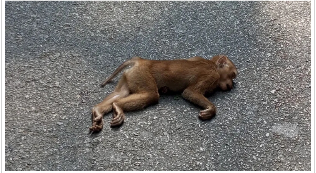 জানা যায়, রোববার দুপুরে একদল বানর রাস্তা পার হওয়ার সময় দ্রুতগতির গাড়ি একটি ছোট বানরকে চাপা দিয়ে চলে যায়। ঘটনাস্থলেই বানরটি মারা যায়।