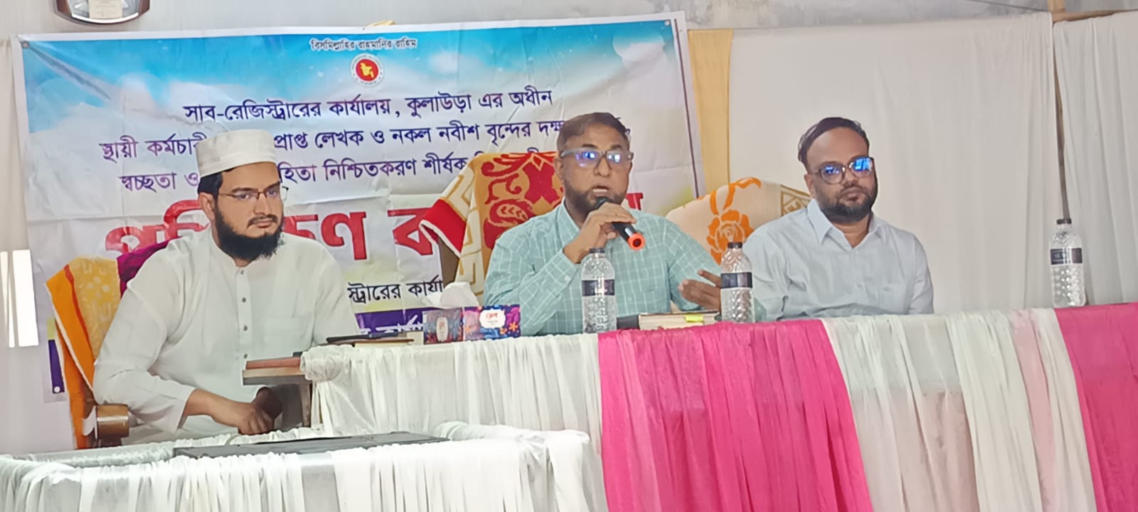 স্টাফ রিপোর্টার: কুলাউড়া-এ সাব-রেজিস্ট্রার কার্যালয়ের অধীনস্থ স্থানীয় কর্মচারী, সনদপ্রাপ্ত দলিল লেখক ও নকলনবিশদের দক্ষতা, স্বচ্ছতা ও জবাবদিহিতা নিশ্চিত করতে একদিনব্যাপী প্রশিক্ষণ কর্মশালা অনুষ্ঠিত হয়েছে।